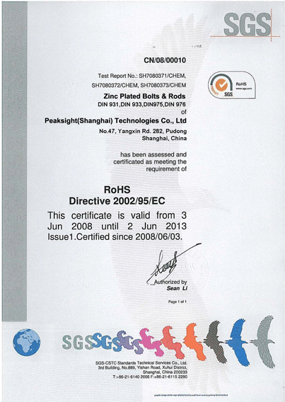 Furthermore, PEAKSIGHT takes seriously in the safety and environment protection, we got SGS RoHS certificated in June, 2008.